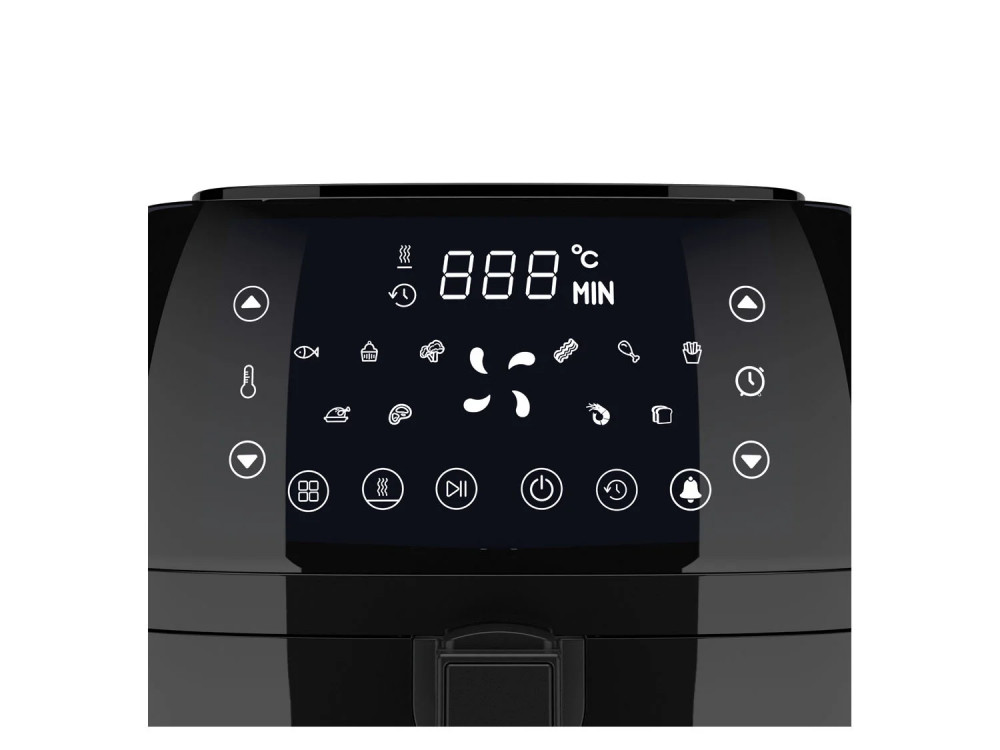 A beépített digitális időzítővel akár 60 perces sütési idő állítható be előre. Az automatikus kikapcsolási funkció hangjelzéssel jelzi az étel elkészültét. Széles korlátok között állítható hőmérséklet-szabályozó funkcióval 200 fokig választhatja ki az ételhez legjobban illő sütési hőmérsékletet. Élvezze az aranyszínű, ropogós sült krumpli, falatkák, csirkehús utolérhetetlen ízét, amelyet az ideális sütési hőmérséklet szavatol, és amely a megfelelő időben készül el.
