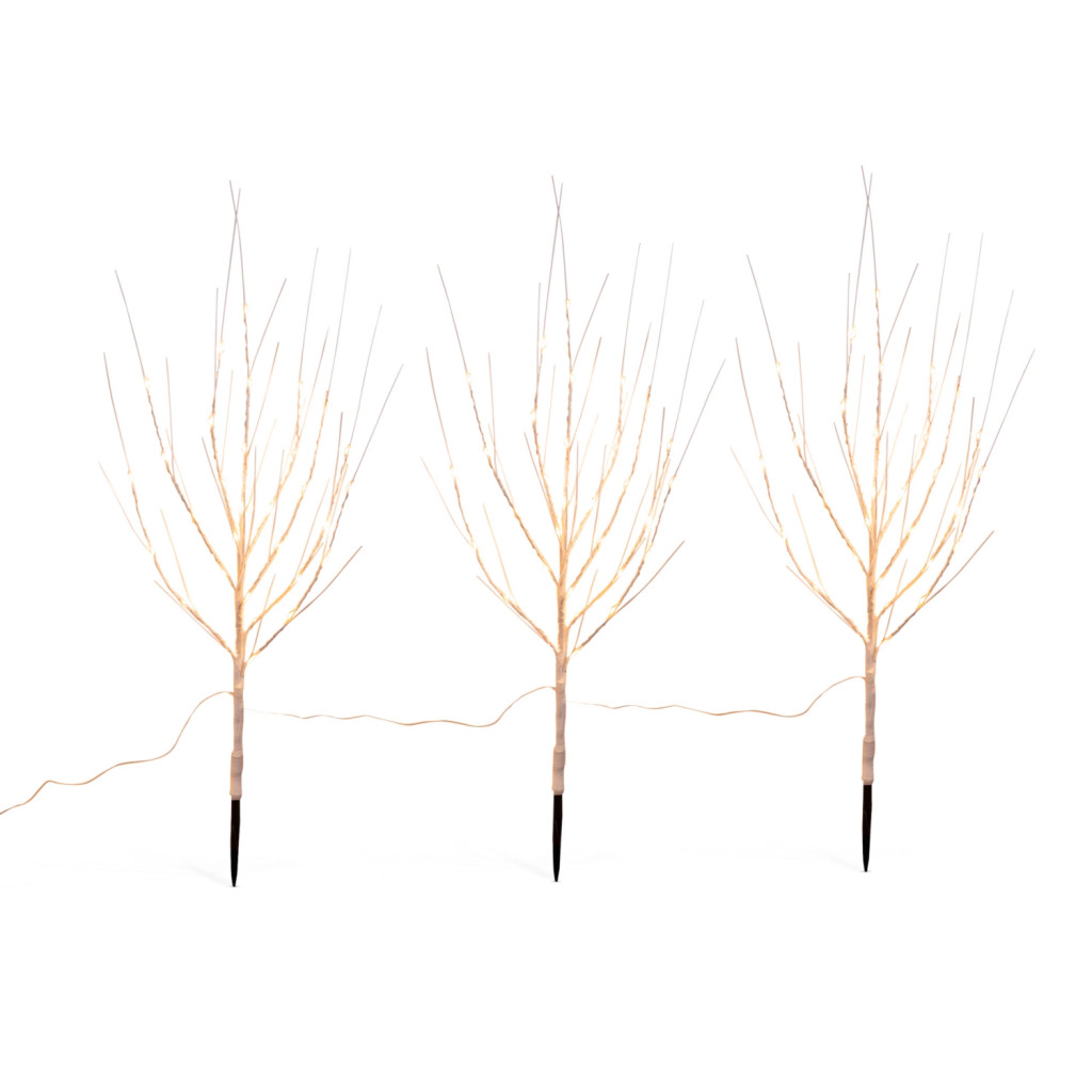 - Melegfehér fény, fehér törzs és ágak