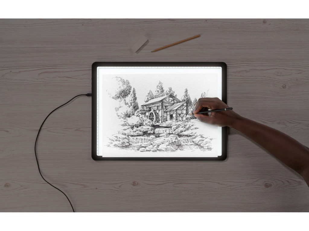 Segítségével a rajzok, vázlatok, tetoválások átírása vagy az ultrahangok manuális lemásolása sokkal könnyebbé és pontosabbá válik, mint valaha. A termék nem akkus, USB tápellátású. USB kábel tartozék, hálózati adapter viszont nem. Mérete A3-as dokumentumokhoz illeszkedik, skálázással: 459 x 330 x 7 mm (extra slim)