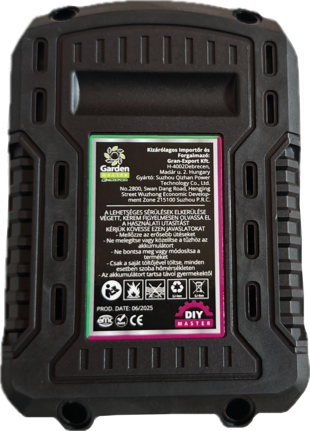 - Kizárólag az akku és töltő nélkül forgalmazott E-MASTER megjelölésű GardenMaster kerti gépekhez, és Makita gépekhez használható
