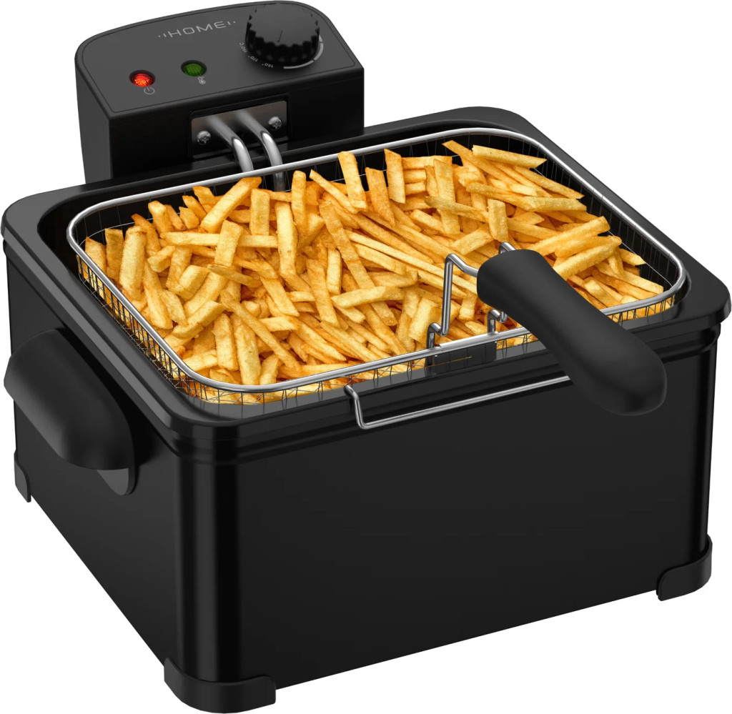 Szereted a sült krumplit vagy más sült ételeket, és egy megfelelő, megfizethető, igényeidet kielégítő fritőzt keresel, amely például kompakt méretekkel, könnyű kezelhetőséggel illetve alacsony karbantartási igénnyel rendelkezik? Akkor a Home Deep Fry Max rozsdamentes acélból készült fritőz ideális lesz számodra. A nagyméretű sütőkosárnak és a 4 literes maximális térfogatnak köszönhetően egyszerre akár 1,2 kg sült krumplit is elkészíthetsz benne, így a fritőz nélkülözhetetlen segítőd lesz a konyhában.