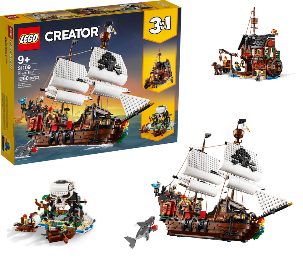 Ezzel a LEGO Creator 3 az 1-ben játékkészlettel a gyermekekre legalább 3 különböző építési és játéklehetőség vár. A gyermekek megépíthetik a Kalózhajót, amelyet átalakíthatnak Kalóz fogadóvá vagy egy ijesztő Koponya-szigetté. Vagy szabadjára engedhetik a kreativitásukat, és valami újat is építhetnek.