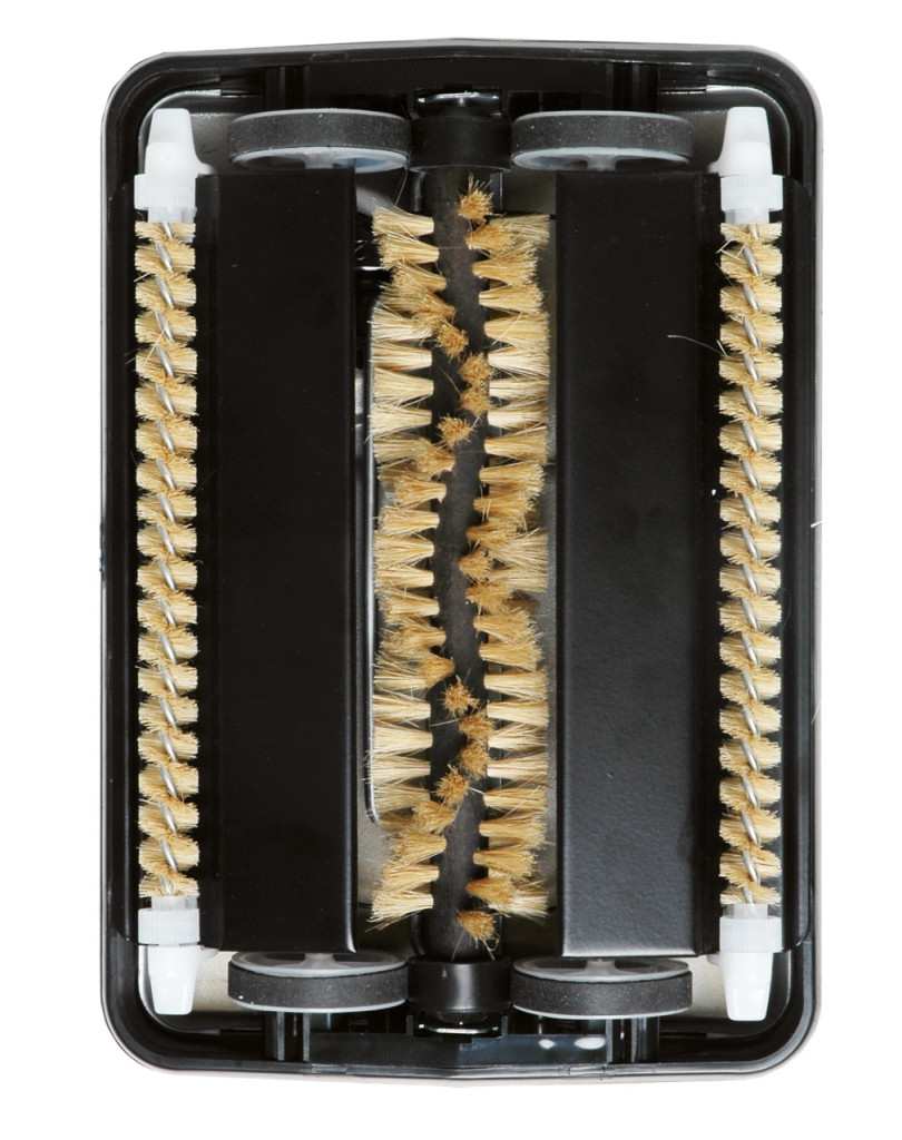 A seprű használata rendkívül egyszerű: csak végig kell tolni a szőnyegen vagy kárpiton, és a 3 beépített, erős forgókefe elöl, hátul és középen alaposan felszedi a port, morzsát, hajszálakat és egyéb szennyeződéseket. A 22 cm-es munkaszélesség gyors haladást tesz lehetővé, míg az alacsony, 7.5 cm magas kialakítás révén könnyedén befér bútorok, székek és asztalok alá is.