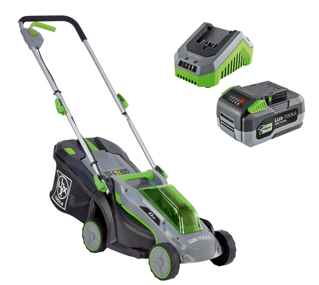 A LUX-TOOLS ARM20/33-KIT akkumulátoros fűnyíró kényelmes és hatékony megoldást kínál legfeljebb 150 négyzetméteres gyepfelületekhez. Kefe nélküli motorjával nagy teljesítményt és hosszabb élettartamot biztosít. 20 V-os akkumulátorral működik (a 4.0 Ah-s akkumulátorral és a gyorstöltő készülékkel együttes csomag), így kábelektől függetlenül dolgozhat.