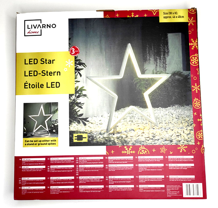 Kültéren és beltéren egyaránt használható, melegfehér, energiatakarékos LED fémvázas csillag fénydekoráció, 6 órás időzítővel (automatikus ki-be kapcsolással). A csillag világítását 108 db melegfehér LED biztosítja. Méretek 460 x 480 mm (szélesség x magasság)