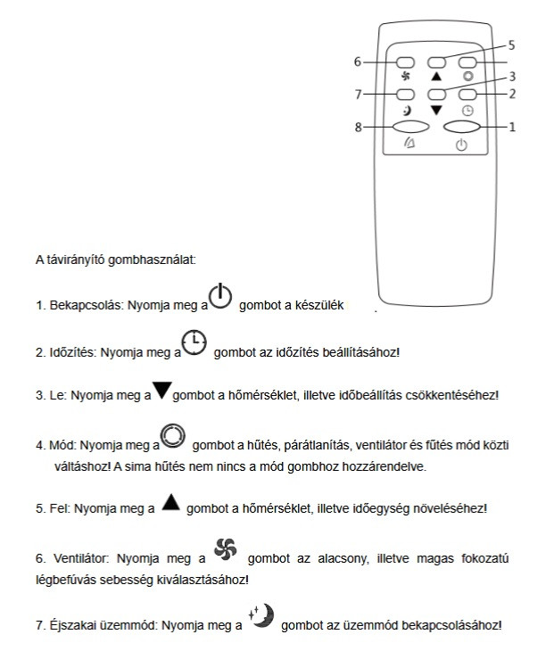 A hőfok és időzítő beállításához nyomja meg a fel vagy le gombot! A ventilátor és páramentesítés módban ez az opció nem lehetséges.