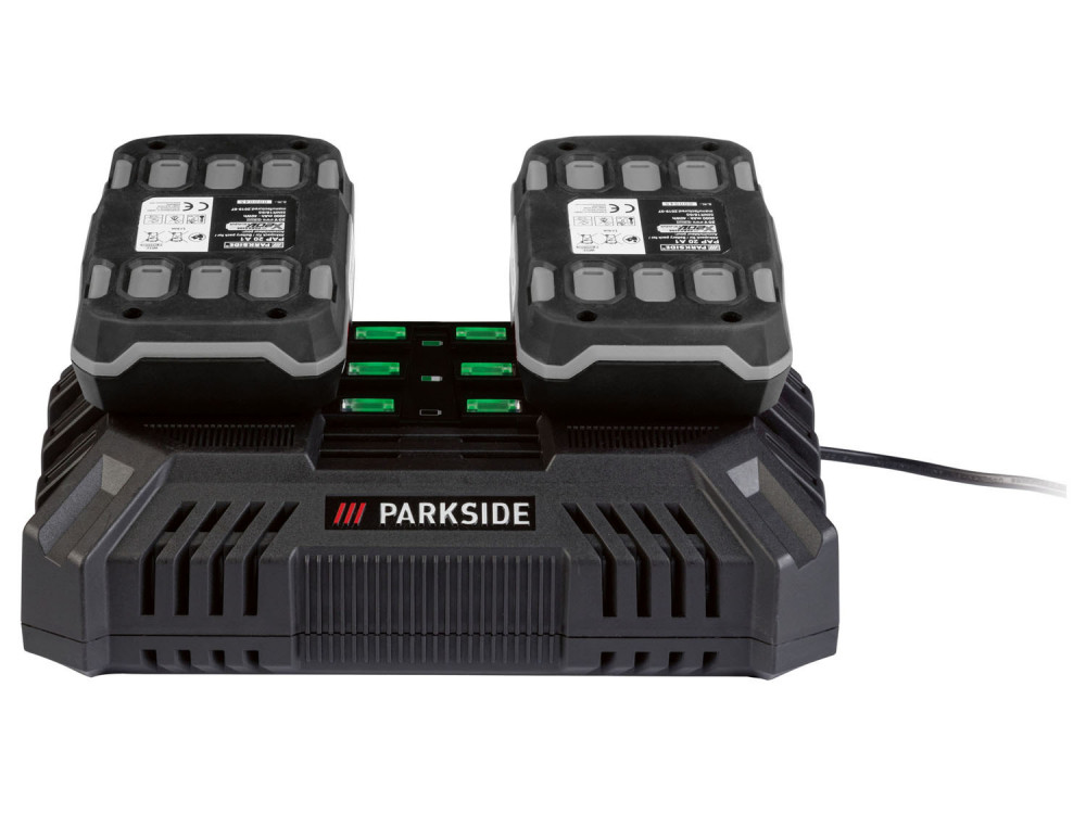 - Ez a töltő kizárólag a PARKSIDE X20V Team termékcsalád akkumulátorainak töltésére alkalmas, akár külön-külön, akár egyidejűleg 2 db akkumulátortöltésére