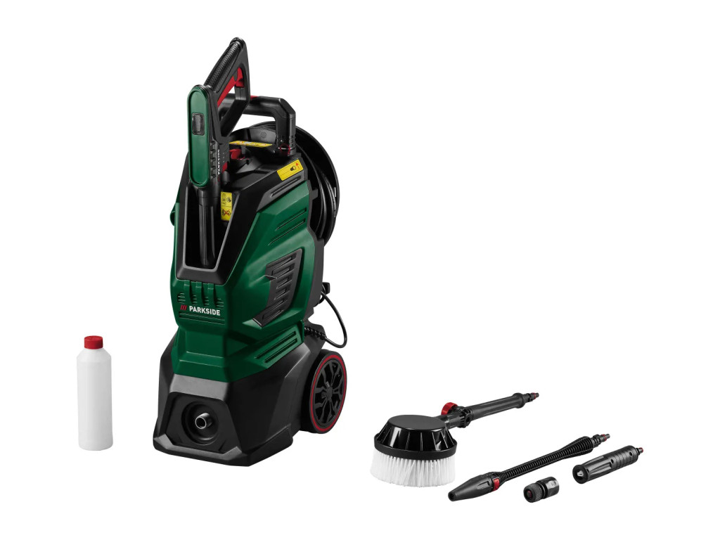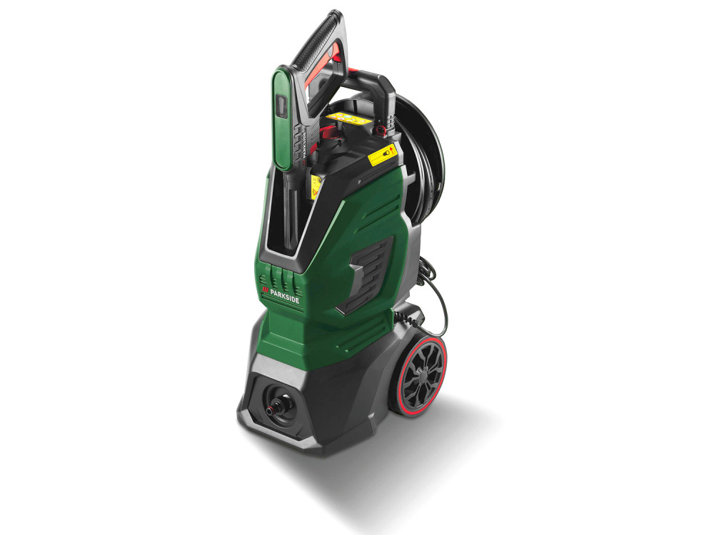 - Otthoni használatra tervezett, erőteljes magasnyomású mosó, számos kiegészítővel, fém (alumínium) szivattyúval