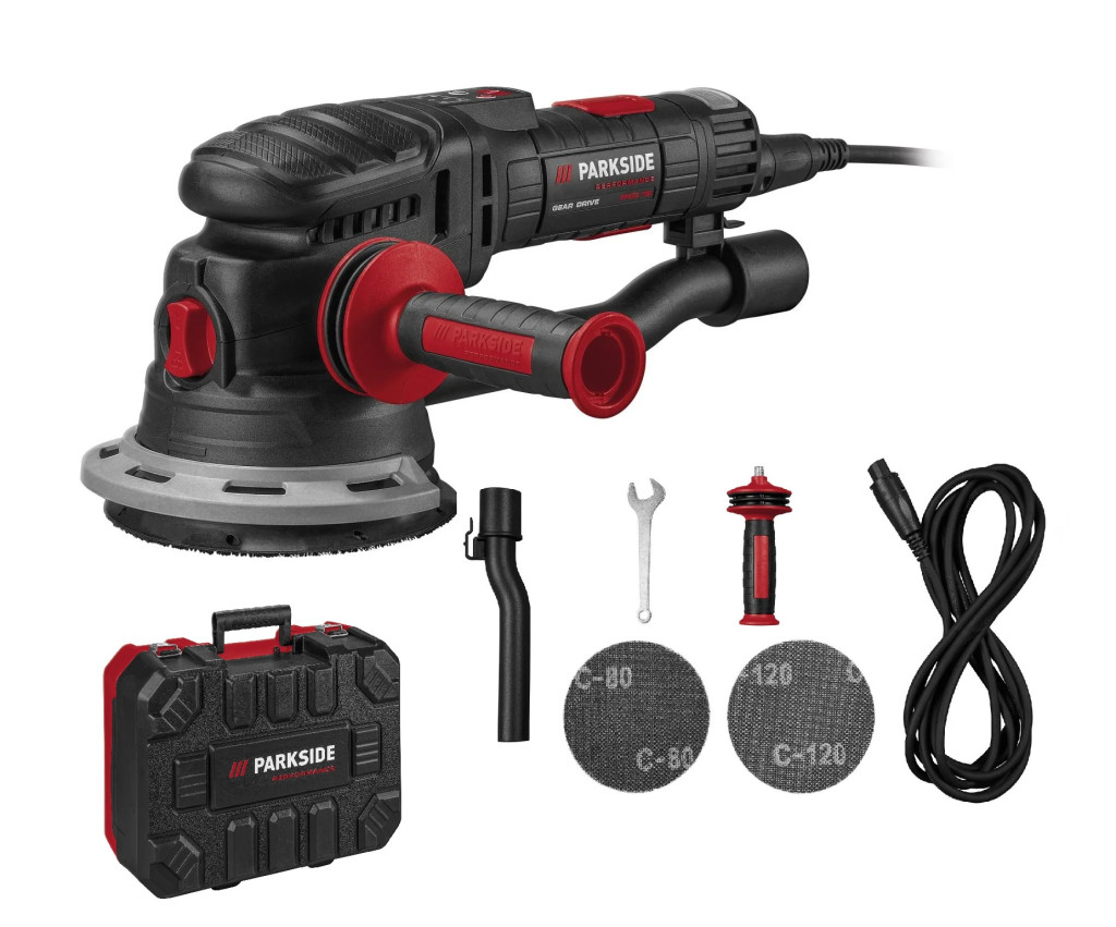 - Tartozékok: 2 db tépőzáras csiszolólap fához (szemcseméret: 80/120), élvédő (előre szerelt), adapter külső porelszíváshoz (előre szerelt), pótfogantyú, villáskulcs, levehető tápkábel