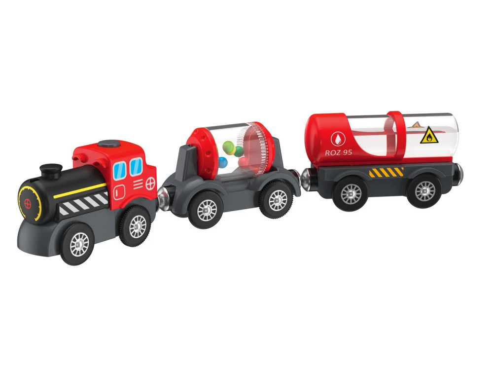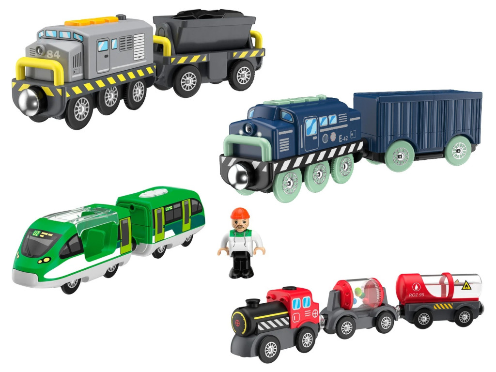 Kompatibilis PlayTive, Carousel, Tesco, IKEA, Brio és más, kereskedelmi forgalomban megtalálható szabványos fa vonat szettekkel is.