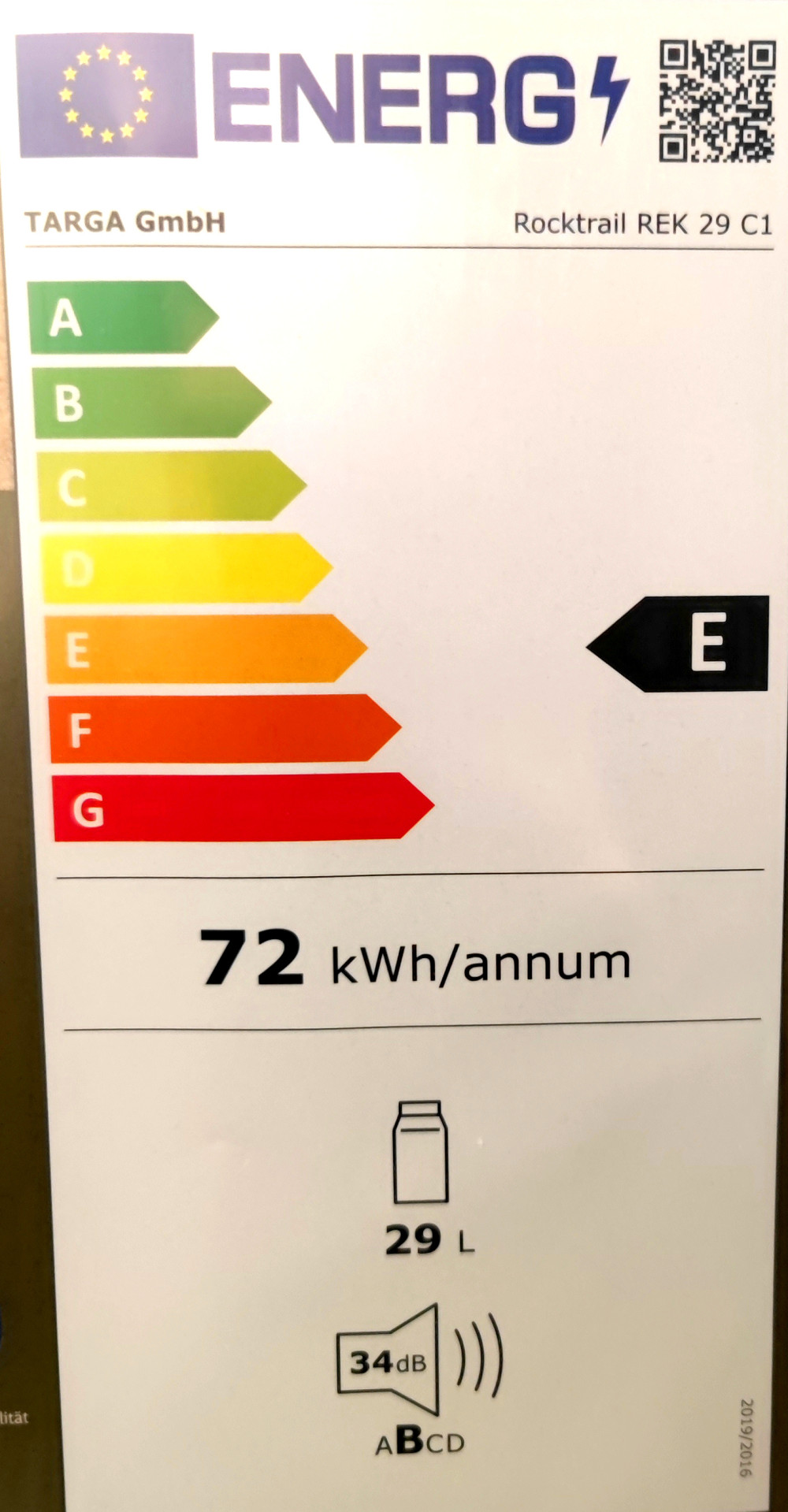 - "E" energiahatékonysági osztály (2021 előtti jelölési rendszerben A+++)