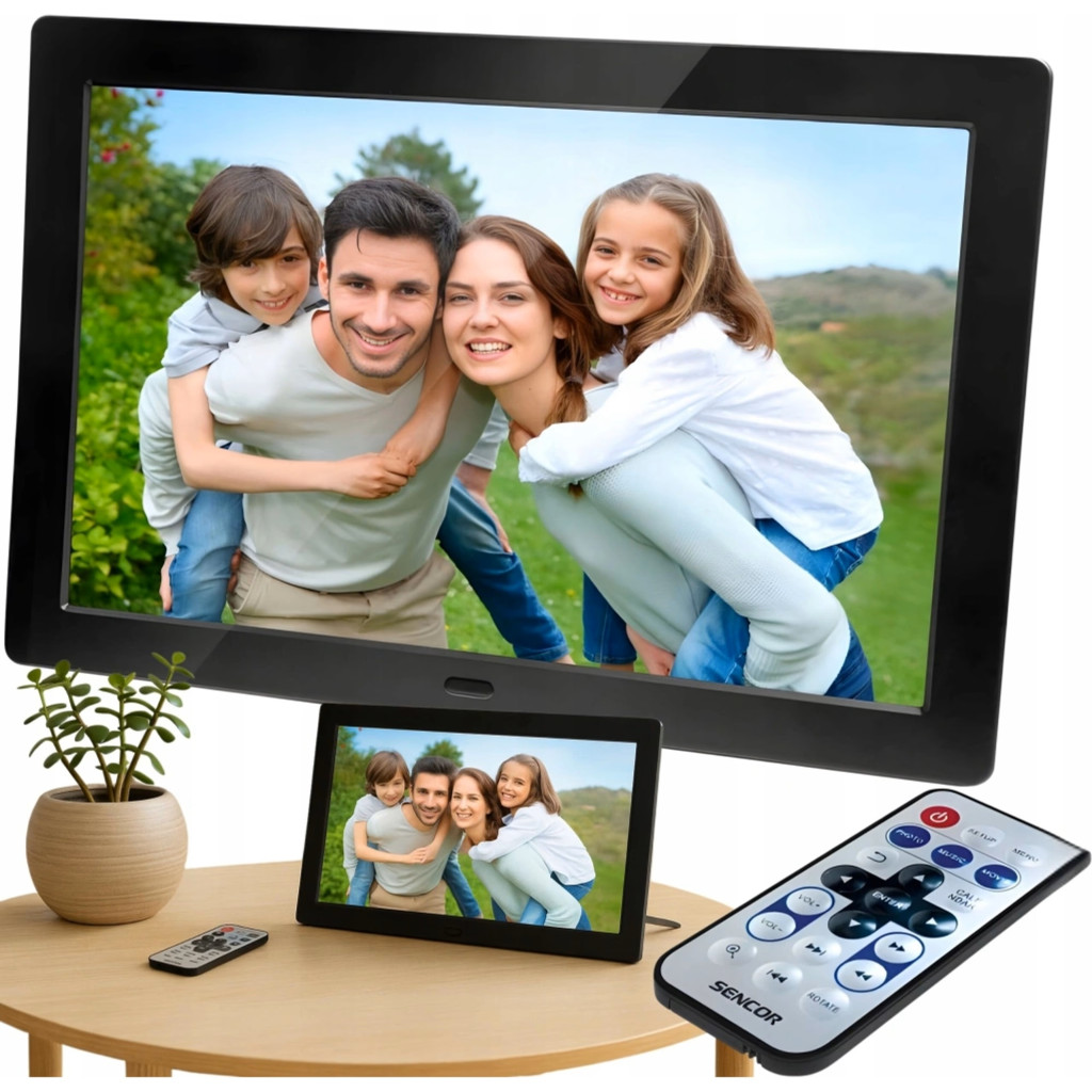 Idézd fel a rég elfeledett pillanatokat a Sencor SDF 874B ultravékony digitális képkeretének segítségével. A fényképkeret IPS kijelzője 8,0” azaz 20,3 cm képátlóval rendelkezik, melynek a fényerejét az igényeinek megfelelően állíthatod be. A 16:9 képarány a széles látószög és élénk színek mellett a nagy felbontást is érdemes megemlíteni, ami 1280 x 800 képpontot jelent. A beépített 1W teljesítményű hangszóró segítségével akár videó montázsok vetítésére is kiválóan alkalmas. Az elegáns megjelenésnek köszönhetően kiválóan el tudja foglalni az egyszerű papírképek helyét a lakásban vagy irodában, érdekes dekorációt hozva létre a belső térben. Lehetőség van akár a falra is felszerelni, de asztali állványként is kiváló helyt áll.