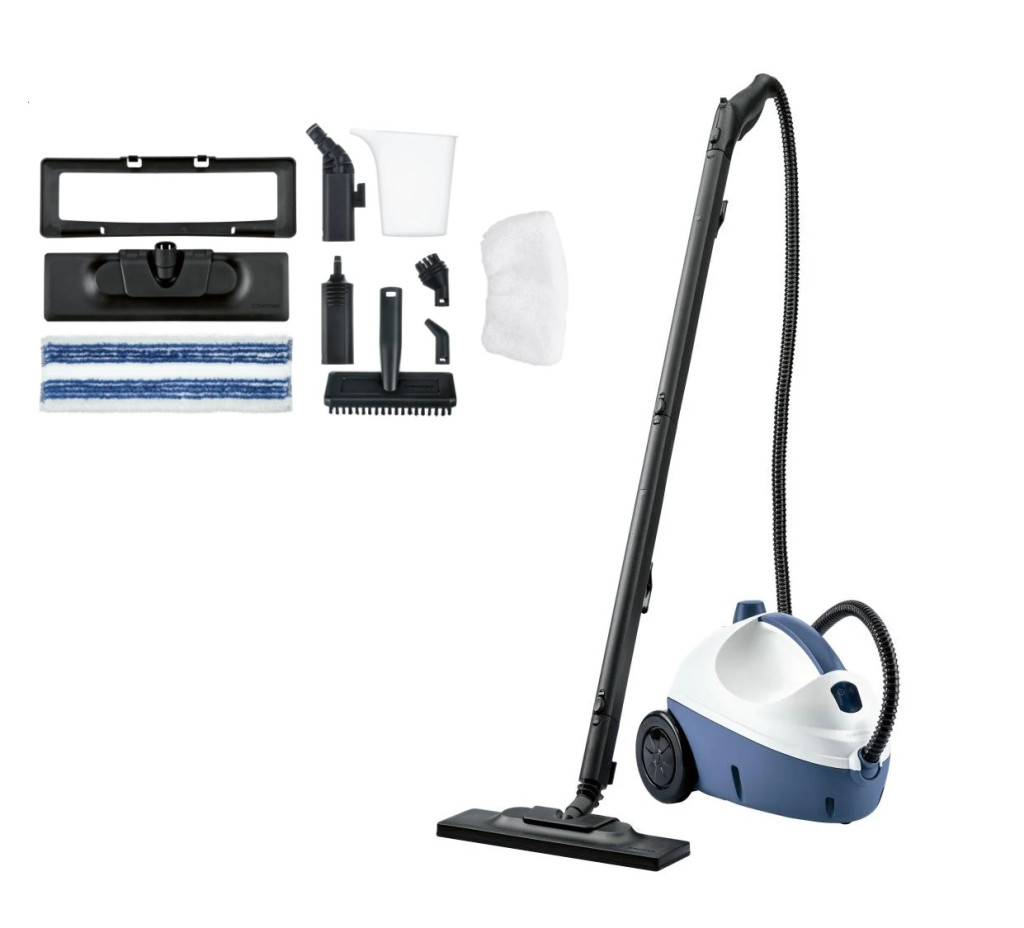 - Számos tartozékot tartalmaz: padlókefe, réstisztító fej, nagy kerek kefe, kis kerek kefe, kárpittisztító fej, ablakfeltét, 2 db-os hosszabbító cső, adapter padlókeféhez, réstisztító fej, tisztítókendő padlókeféhez, kis tisztítókendő, mérőpohár, tölcsér