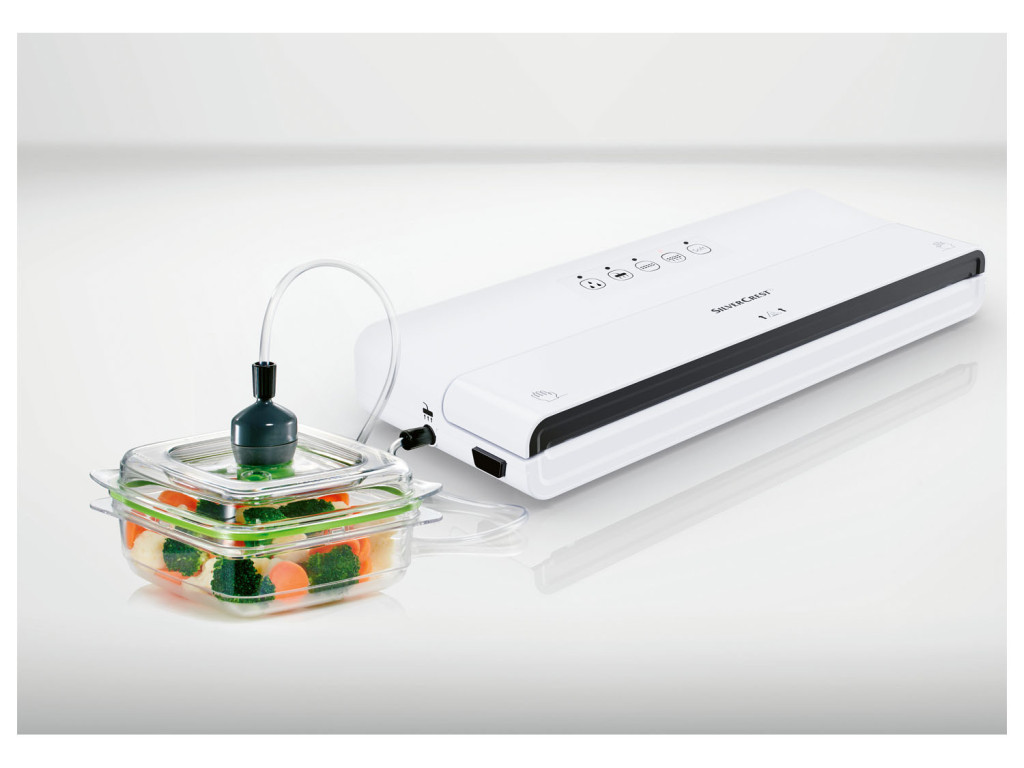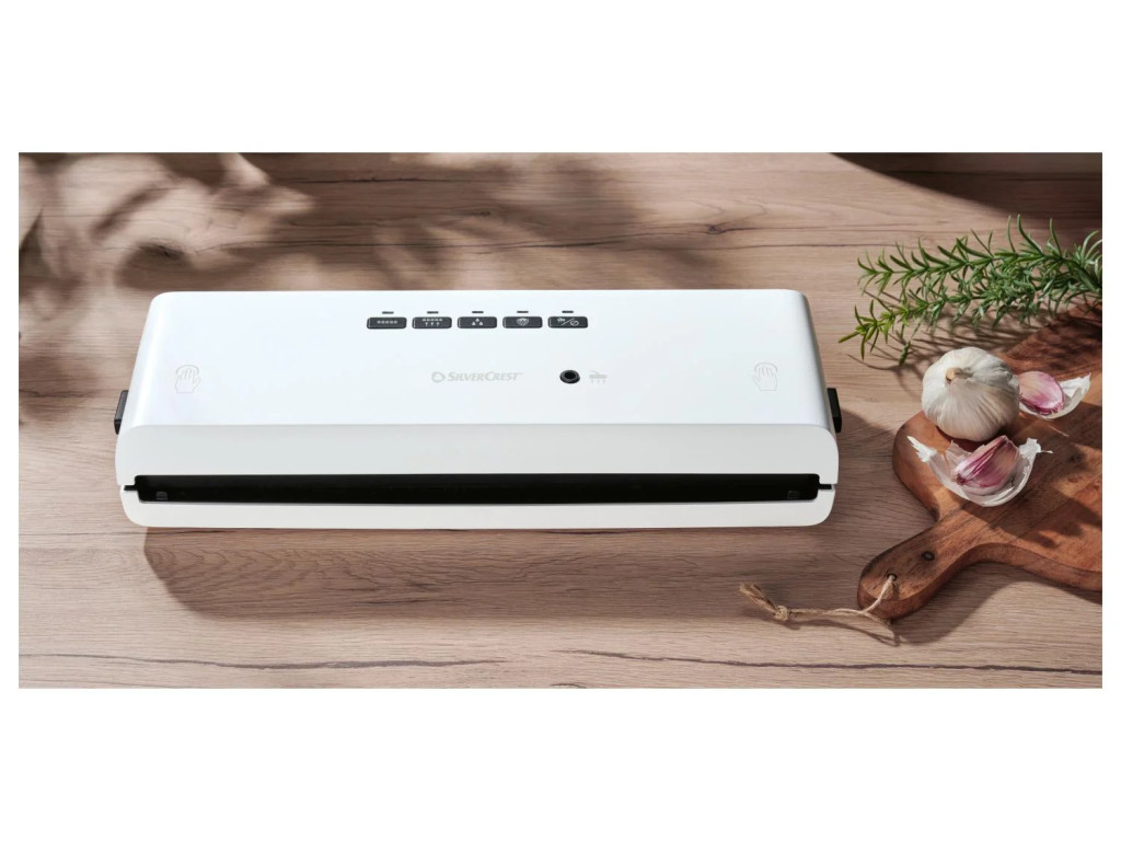 A SilverCrest SV 130 A1 vákummcsomagoló fóliahegesztő kizárólag vastag, légbordás sous-vide csomagolófóliával használható. Ez a fólia garantálja a boltokban is megszokott, 100%-os precizítású vákuumképzést, mellyel az élelmiszerek légmentesen tárolva hosszú időn át nem romlanak meg. A termék alkalmas fóliából és külső edényből történő vákuumozásra is a mellékelt adapterekkel. 30 cm széles megmunkálása háztartási célokra elegendő. Kiváló ár-érték arányú, magabiztos termék, német gyártótól (Kompernass Handels), 3 év garanciaidővel, fekete vagy fehér színben.