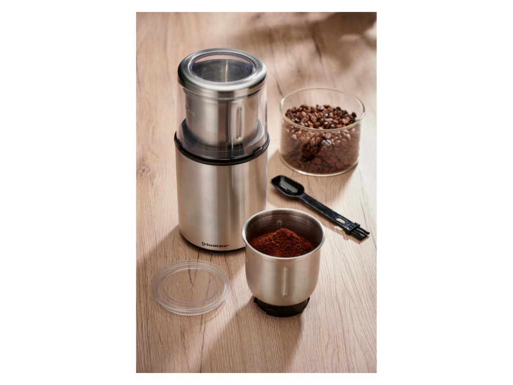 A SilverCrest SZE 200 A1 háztartási kisgép, mely nagy teljesítményű motorjának és kiváló minőségű inox burkolatánakvalamint nemesacél késének köszönhetően gyorsan, kényelmesen, és megbízható darál kávét, diót, mogyorót, vagy fűszereket, egyetlen mozdulattal, másodpercek alatt! 2 az 1-ben cserélhető nagy kapacitású tartályai közül mindig a feladatnak legmegfelelőbbet választhatja: apróbb magvak, fűszerek, mák őrléséhez, vagy gabonafélék, kávébabok, diófélék, mogyoró darálásához.
