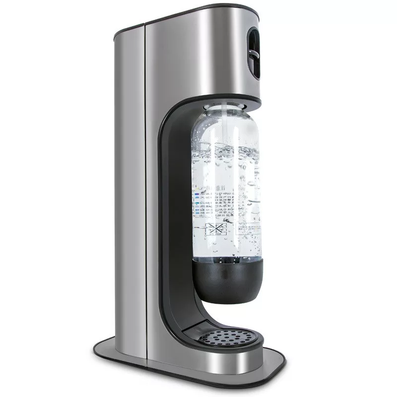 A nemesacél házának köszönheten stílusos megjelenésű Sodaco S100S Soda Maker szinte minden konyhában megállja a helyét. Helyezd be CO2 patront, töltsd fel megfelelő mennyiségű vízzel a BPA mentes palackot, csavard be az üveget és már nyomhatod is a gombot. Vége a nehéz műanyag palackos vizek cipelésének. Bármikor készíthetsz friss szénsavas vizet vagy szörpöt erőlködések nélkül.