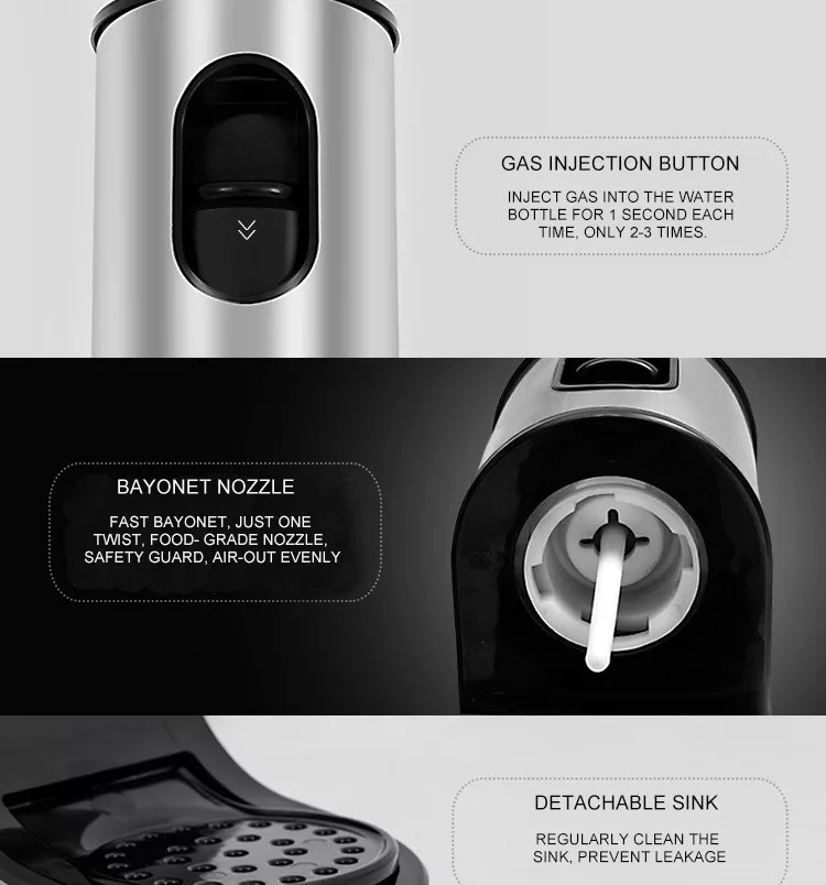 - Működéséhez nincs szükség elektromos áramra, így bármikor és bárhol friss szénsavas vizet kaphat