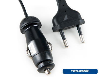- Hálózati csatlakozó kábel és szivargyújtó csatlakozó kábel is tartozék