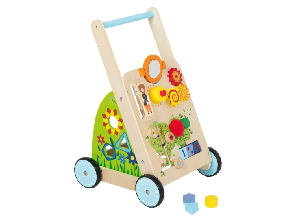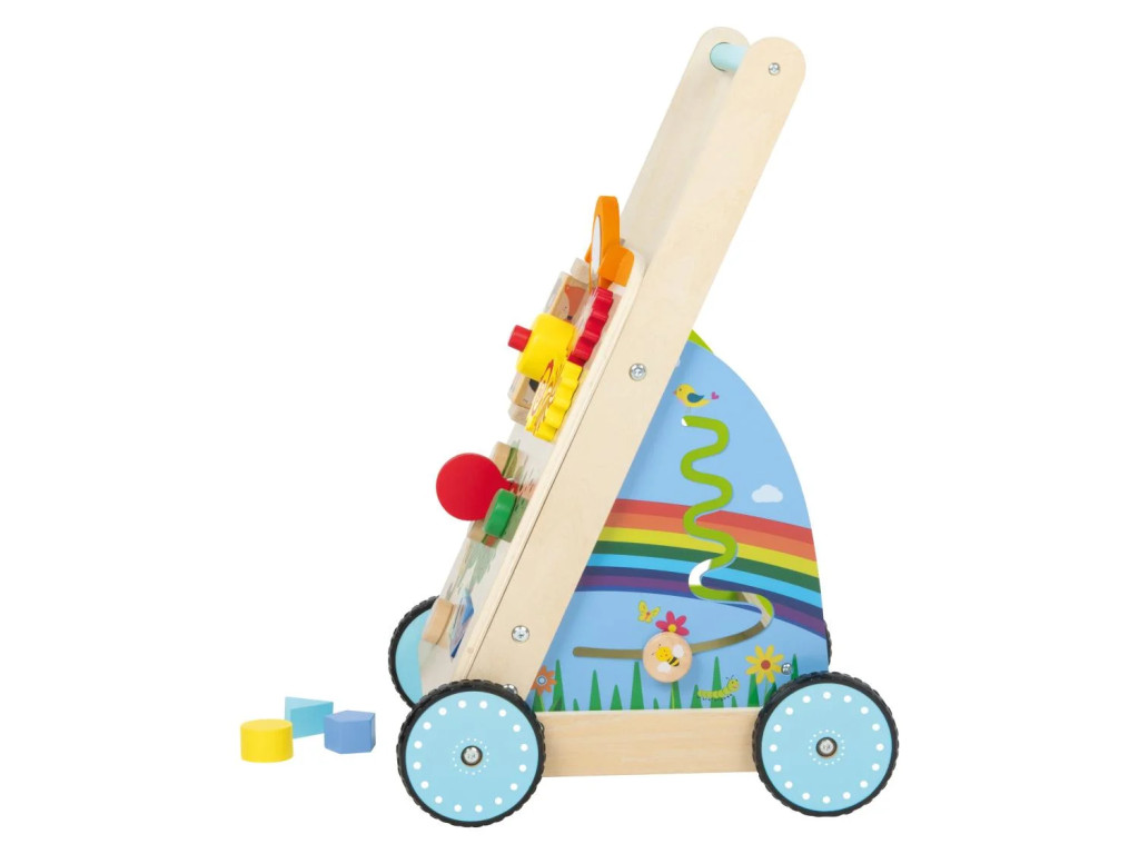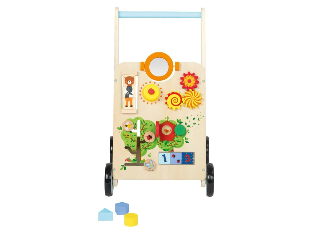 Aktív minden szinten! Ez a stabil járássegítő mindent biztosít, amire a fiatal felfedezőknek a világ felfedezéséhez szükséges lehet. Tömör fa és műanyag elemeket tartalmaz, 1 éves kortól használható, állítható, nagy biztonságot adó fékkel rendelkezik. A gumi bevonattal ellátott kerekek meggátolják a megcsúszást és csökkentik a kerekek zaját a padlón.