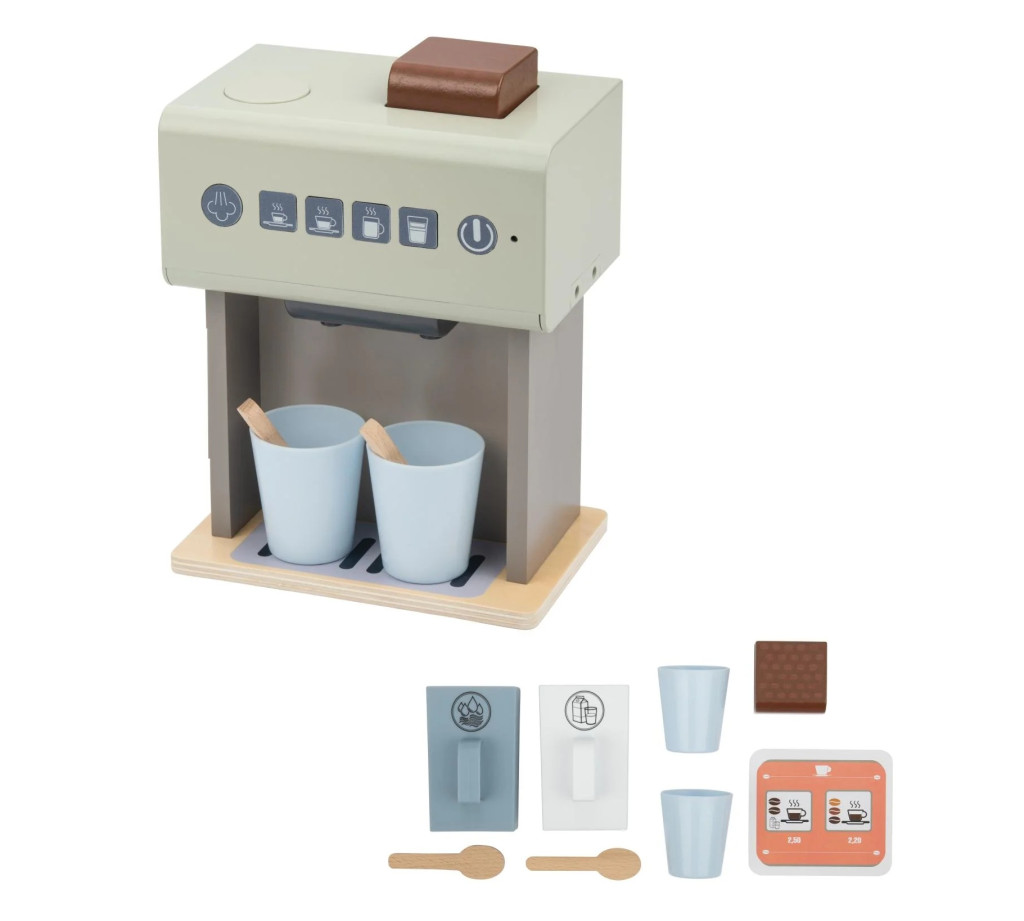 Most a gyermeke végezheti a szülők feladatát: ezzel a játék kávéautomatával perek alatt ízletes kávét főzhet az egész családnak! A készlet akár önmagában, akár játék konyhák kiegészítőjeként kitűnő szórakozást ígér.